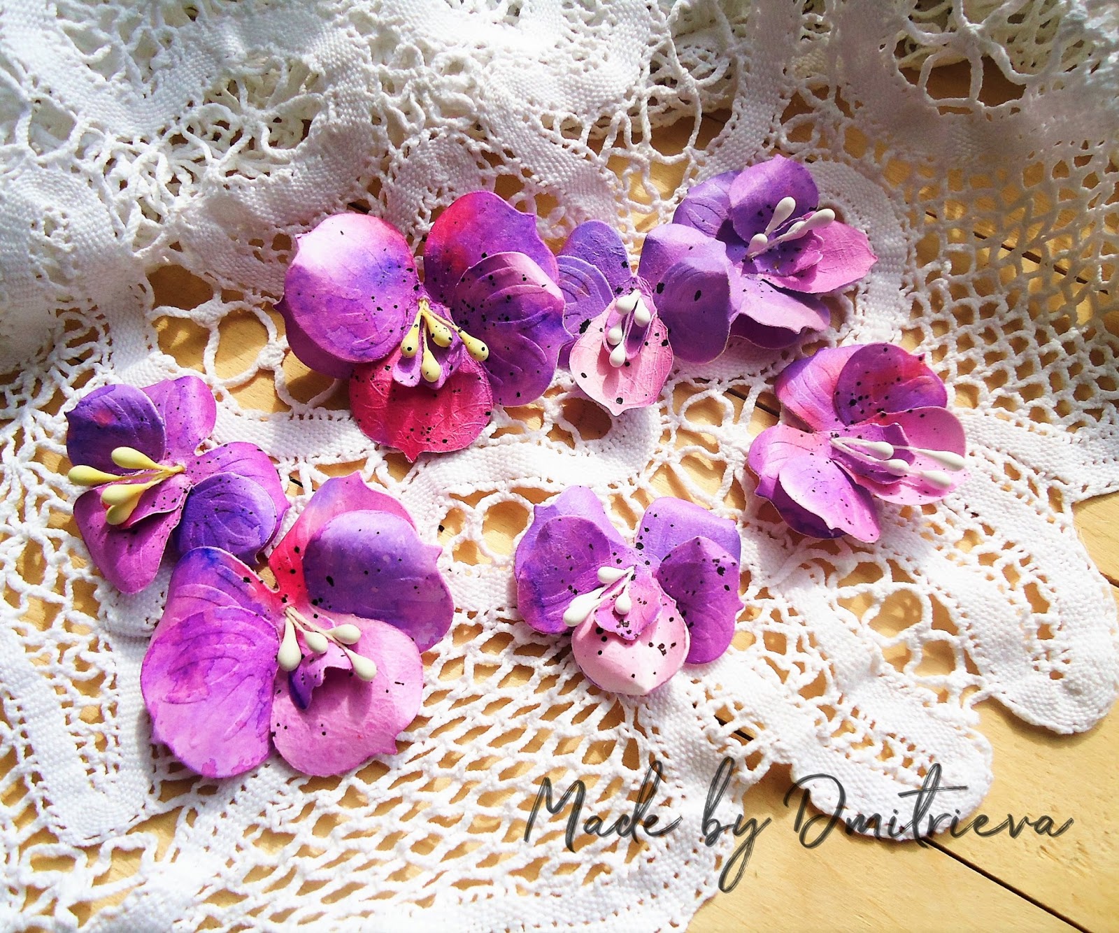 Кстати, маленькие цветочки - так же собственного производства. Выполнены из той же окрашенной акварельной бумаги. Дополнительный нож в наборе к орхидеям. Если делать цветы, так сразу все, что можно))) Разошлась...